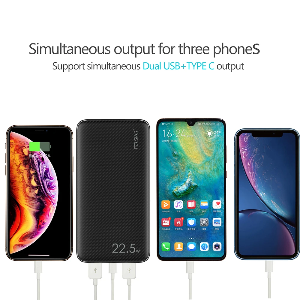 FERISING 20000mAh SCP 5A Power Bank 22.5W USB Type C External Battery Charger 20000 mah Quick Charge 3.0 PD Fast Charging Powerbank